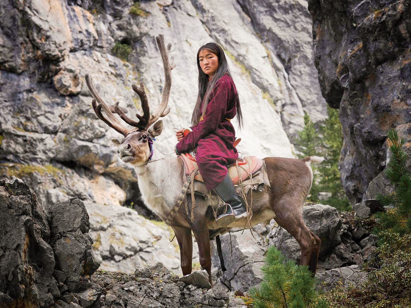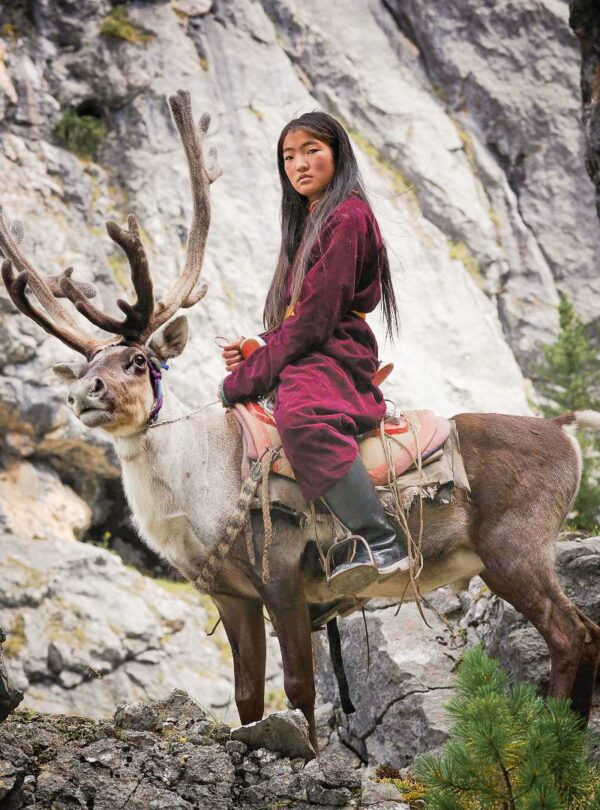 Dans la taïga du Nord vivent les Dukha, souvent appelés Tsaatan, connus pour l’élevage de rennes. Ils ne sont aujourd’hui qu’environ 700, répartis en deux communautés. Leur quotidien est entièrement lié à la forêt : déplacements au rythme des saisons, soins aux rennes, installation des campements, gestion du feu, collecte, et une relation intime et constante avec leur environnement.